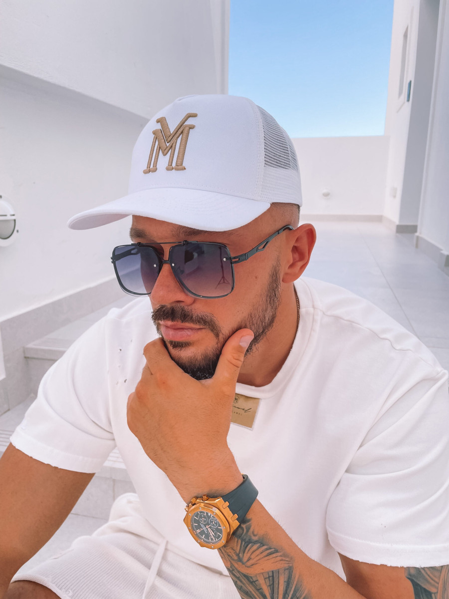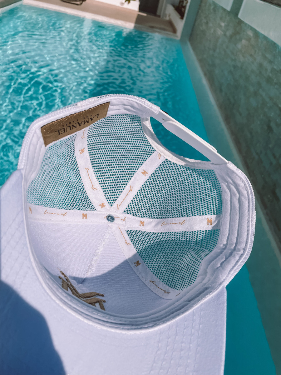 Czapka z daszkiem typu trucker regulowana z tyłu głowy z wysokiej jakości wypukłym haftem marki na froncie oraz żakardowym logo przy zapięciu.
