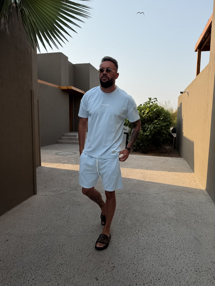 Koszulka wykonana z miękkiego, bawełnianego weluru, który nadaje jej eleganckiego wykończenia i wyjątkowego komfortu noszenia. Na piersi umieszczono subtelny haft z logo LAMANUEL, a przy dolnej krawędzi znajduje się delikatna żakardowa naszywka – dyskretny znak rozpoznawczy kolekcji. Styl, który przyciąga uwagę bez krzyku. Doskonale komponuje się ze spodenkami welurowymi z tej samej linii – razem tworzą ponadczasowy set.