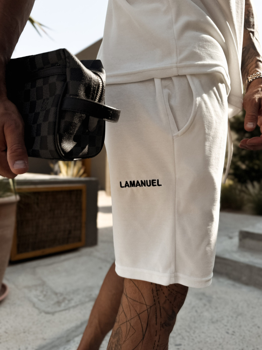 Szorty z bawełnianego weluru, zaprojektowane z myślą o nowoczesnym relaksie w najlepszym stylu. Na tyle jednej z nogawek znajduje się haft z logo LAMANUEL – umieszczony w niestandardowym miejscu, które podkreśla indywidualny charakter projektu. Krój dopasowany do sylwetki, a jednocześnie zapewniający pełen komfort. Idealnie pasują do welurowej koszulki z tej samej kolekcji – razem tworzą spójny i stylowy letni zestaw.
