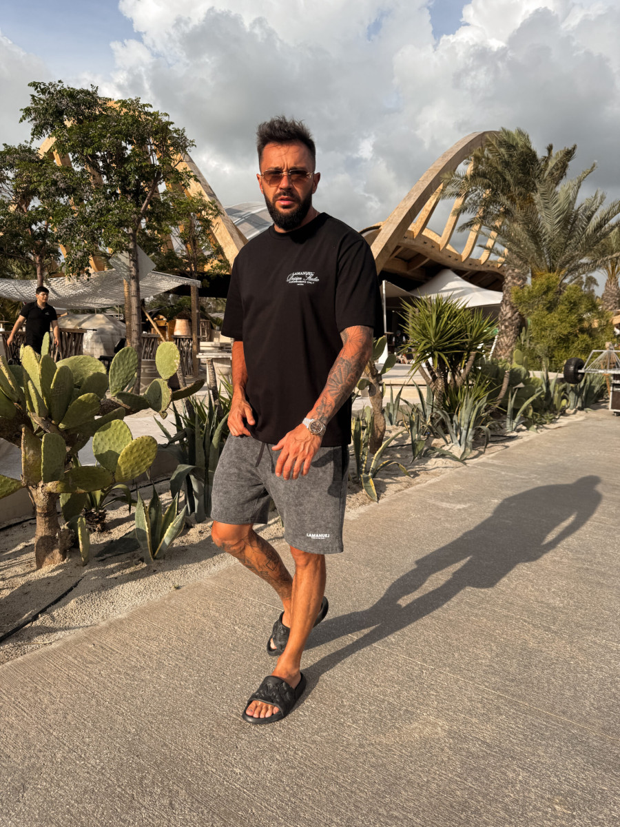 Lekko oversize’owy t-shirt wykonany z wysokogatunkowej, mięsistej bawełny, która świetnie się układa i daje pełen komfort noszenia. Na piersi znajduje się subtelny nadruk „LAMANUEL Design Studio”, a większa wersja tego motywu umieszczona jest na plecach – balansując między minimalizmem a charakterem.